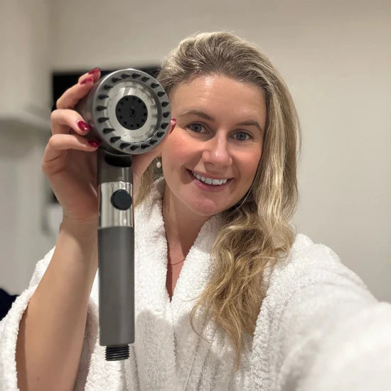 With HydroLuxe, you’ll notice your hair becoming stronger, with less shedding and greater density. By filtering out limescale, chlorine, and heavy metals from the water, your follicles regain their vitality, and your hair appears fuller, shinier, and healthier within just a few weeks.